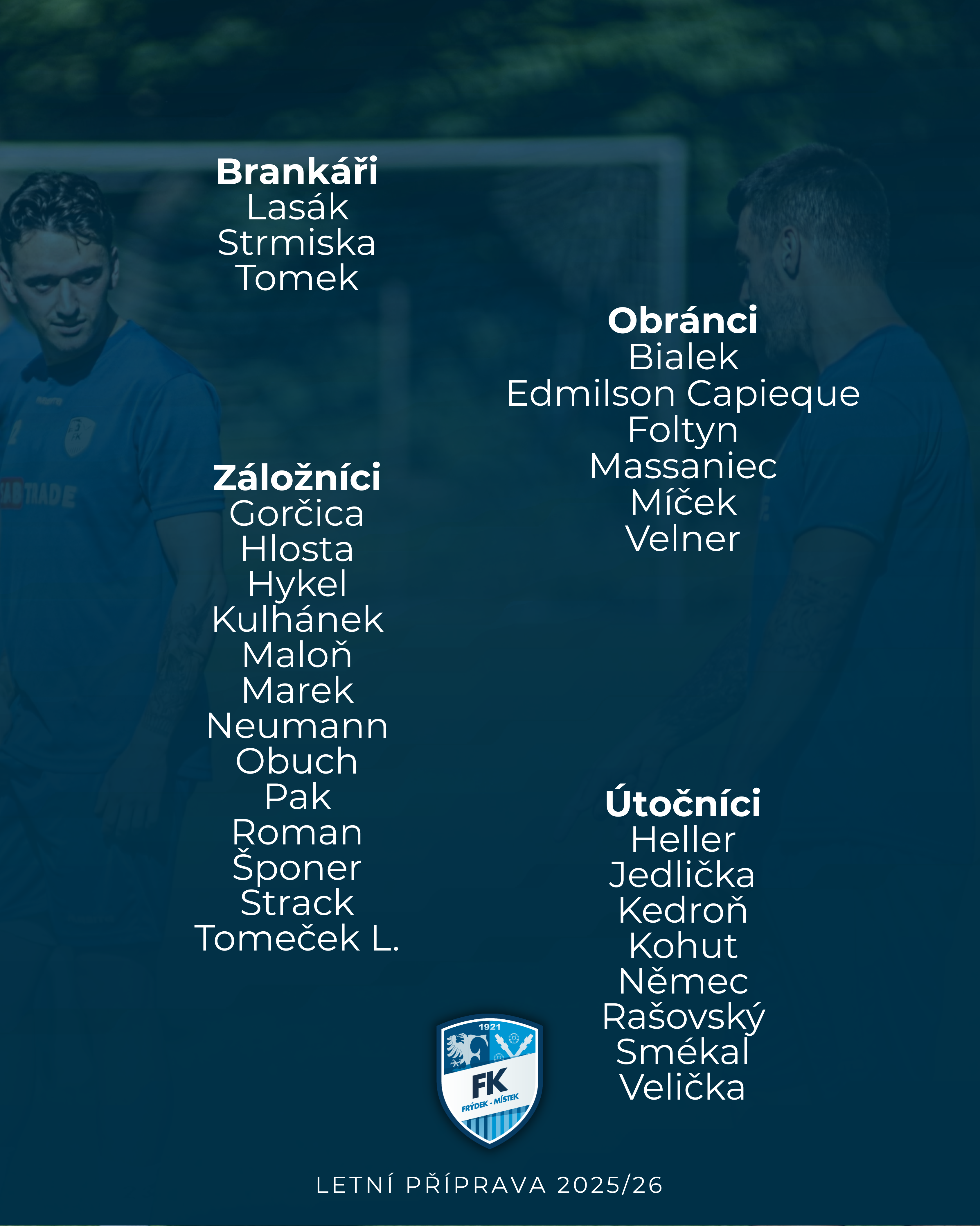 Dnes ve středu 2. července započala letní příprava Válcoven na novou sezónu, do které se zapojilo celkem 30 hráčů. Už tuto sobotu čeká Frýdek-Místek první přípravné utkání, kdy změří síly proti rezervě Opavy. Hrát se bude od 10:00 na hřišti v Sedlištích.