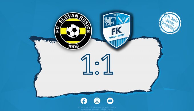 Ve velké šanci se Novák ocitl znovu v 86. minutě, kdy Praksův pěkný centr zakončil hlavou do Gergely. Hostující brankář se činil i v 92. minutě, kdy se před ním po centru Koláčného ocitl Praks, ani on ho však překonat nedokázal. Snaha domácích strhnout vítězství na svoji stranu je nakonec mohla stát bodový zisk, když se v poslední minutě nastavení zjevil sám před Drobkem Janjuš, i tentokrát ale golmán Slovanu mini souboj vyhrál a zápas tak skončil spravedlivou remízou 1:1. (zdroj: fc-rosice.cz)